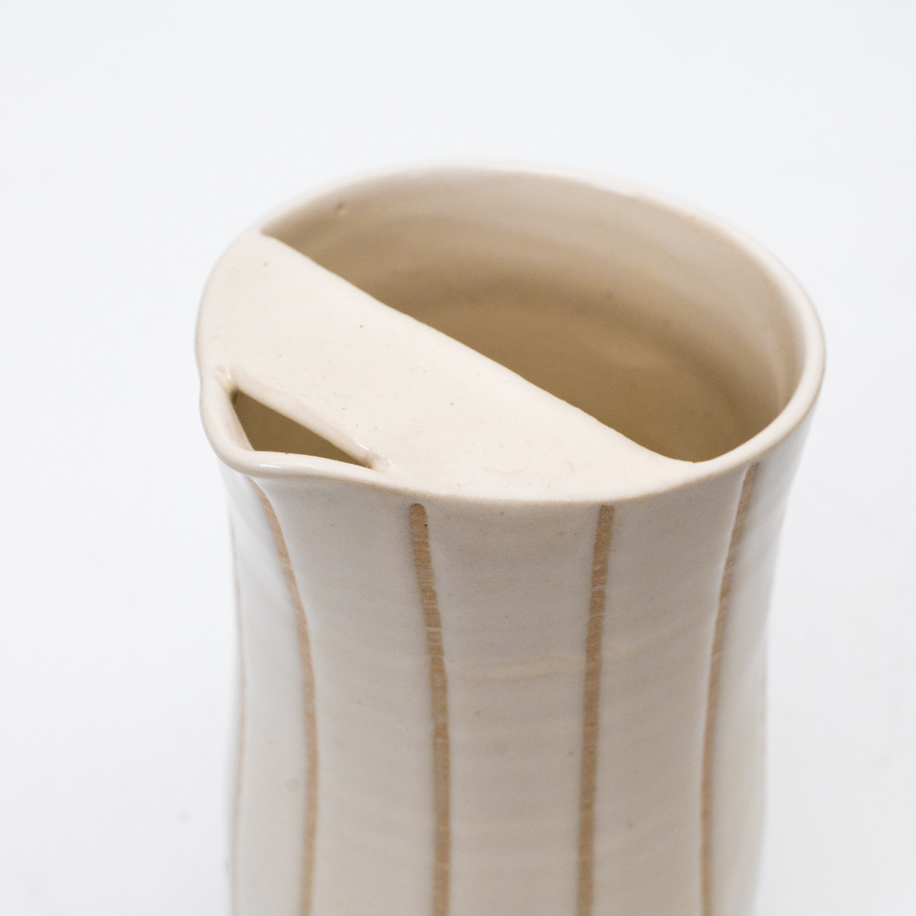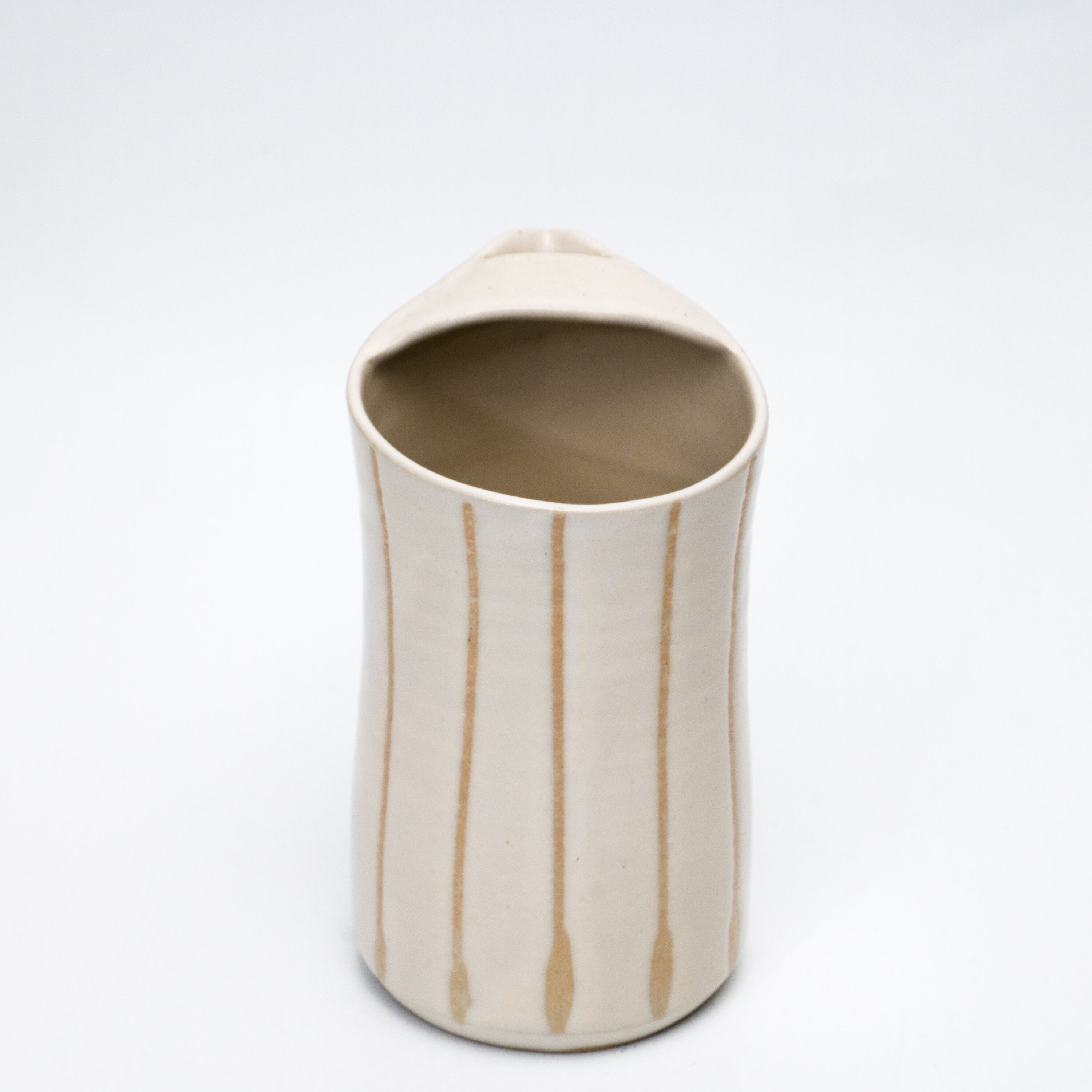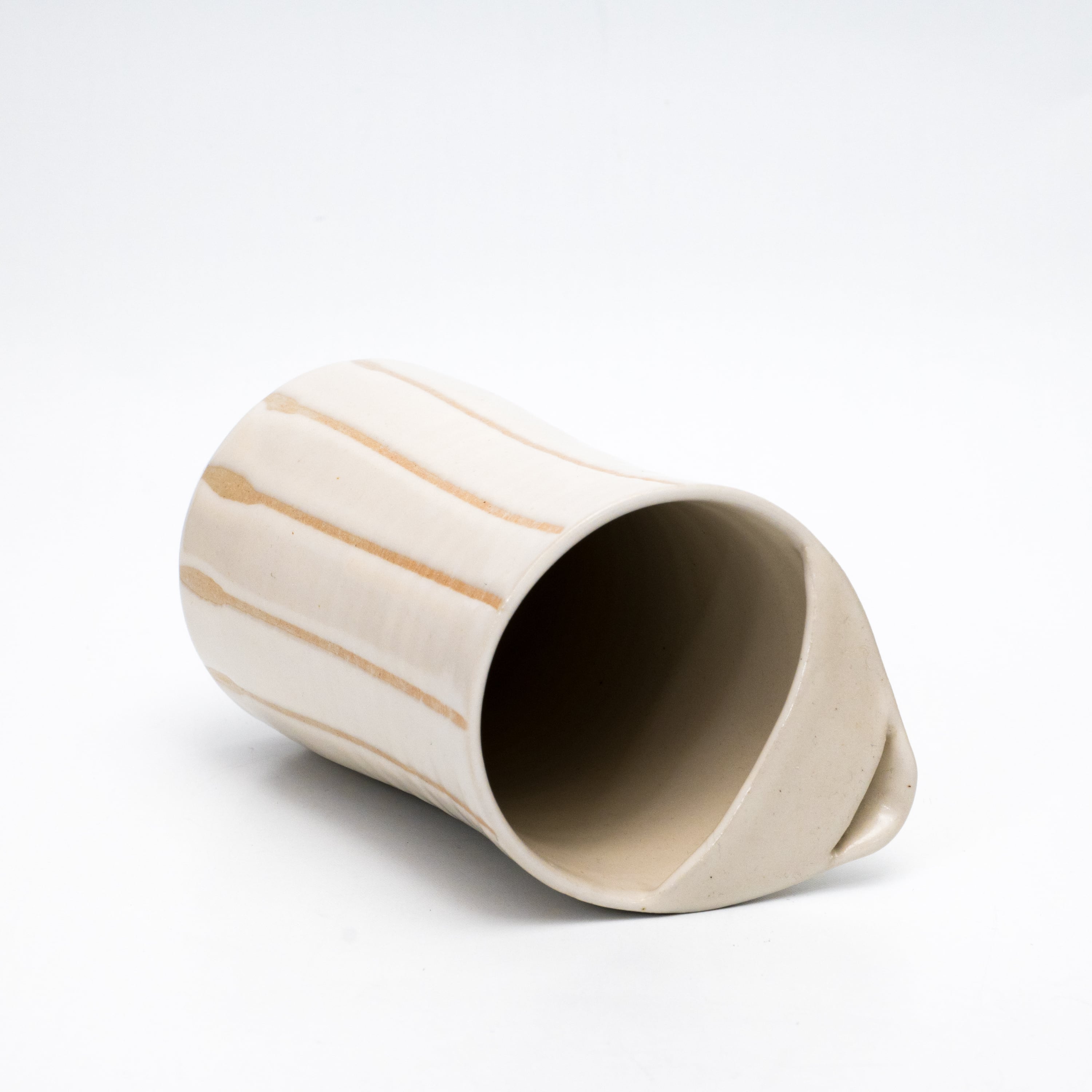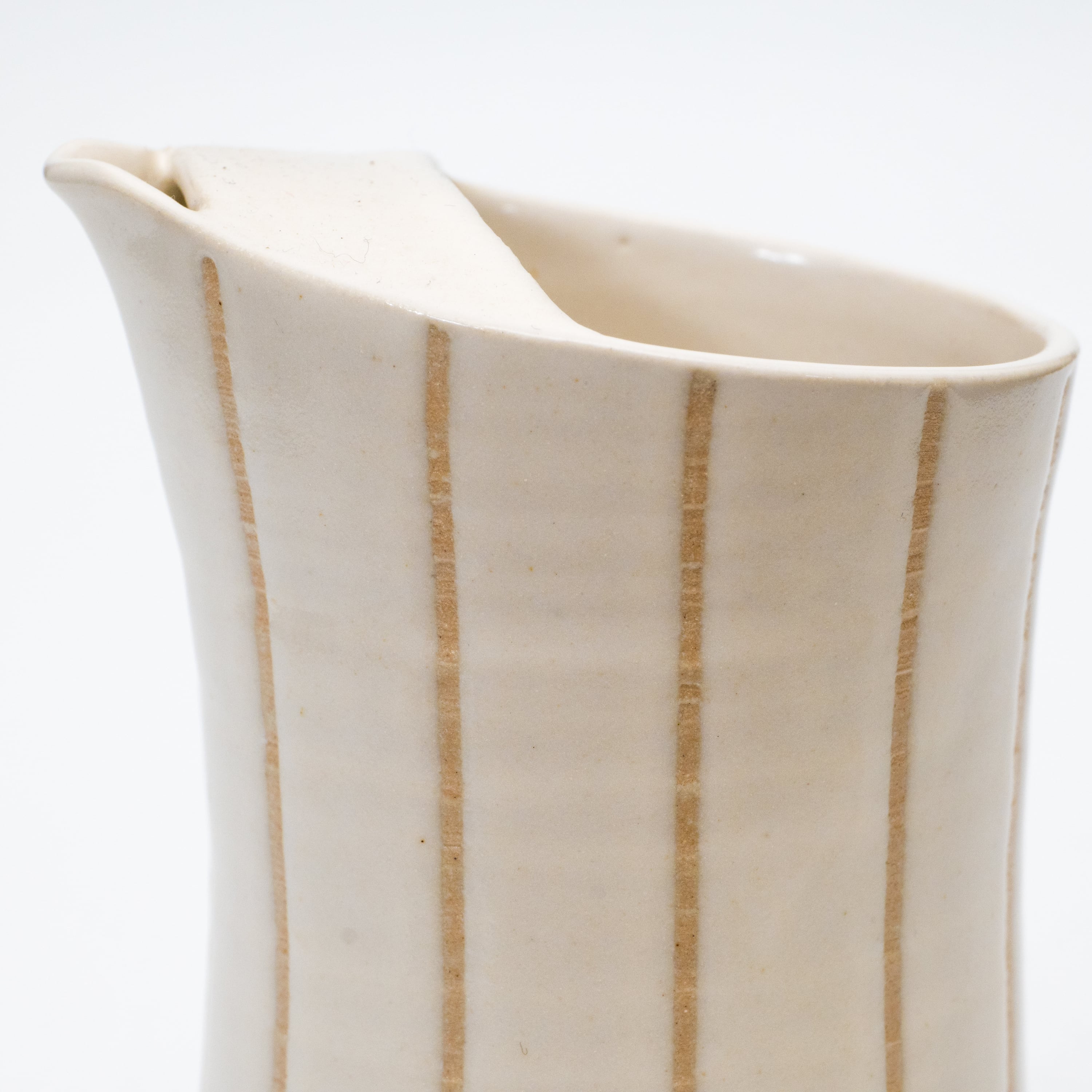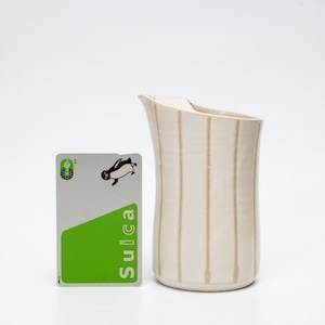 半光沢のアイボリー色に薄いゴールドの縦縞模様が入った片口酒器です。
