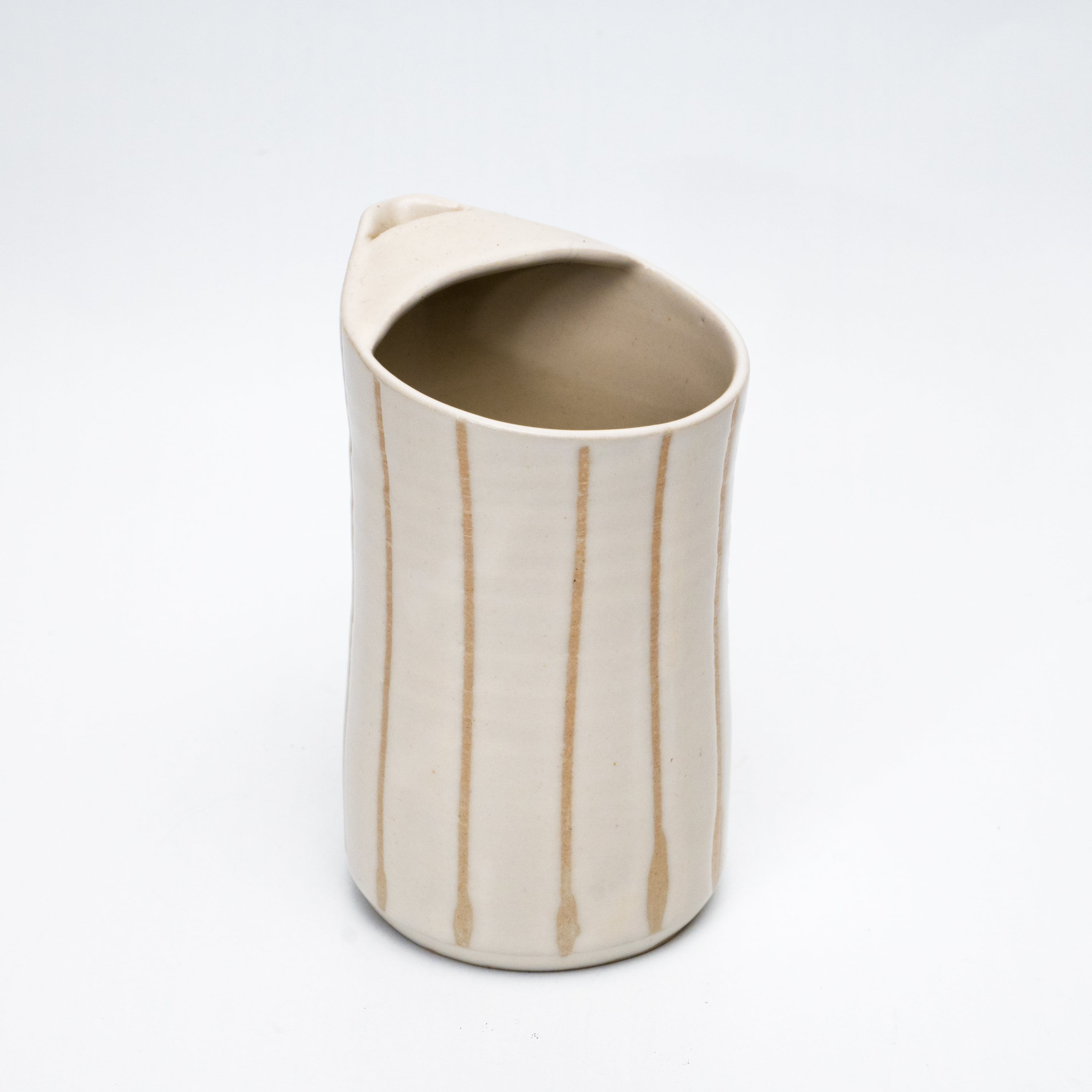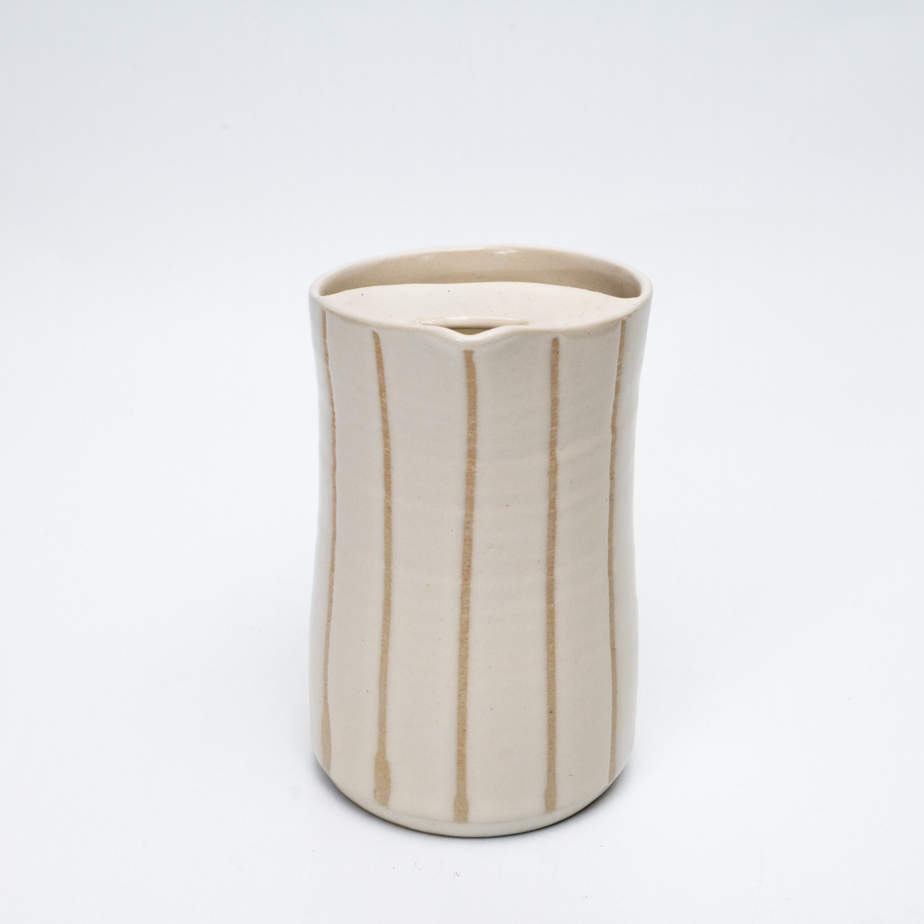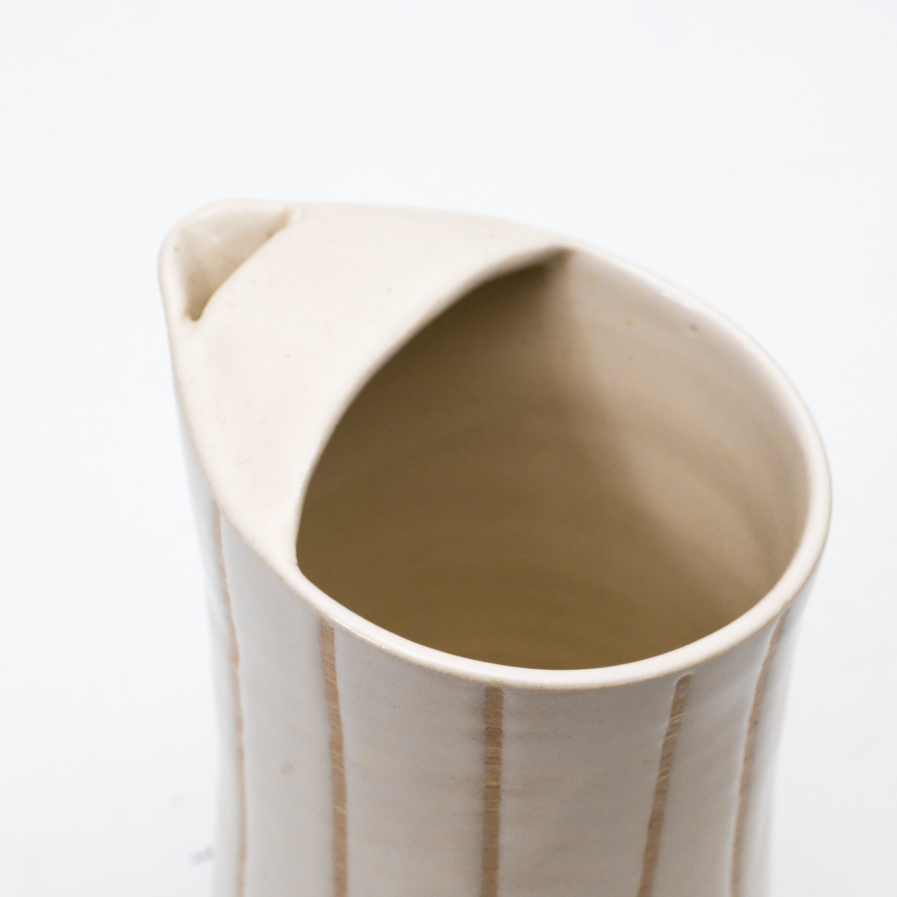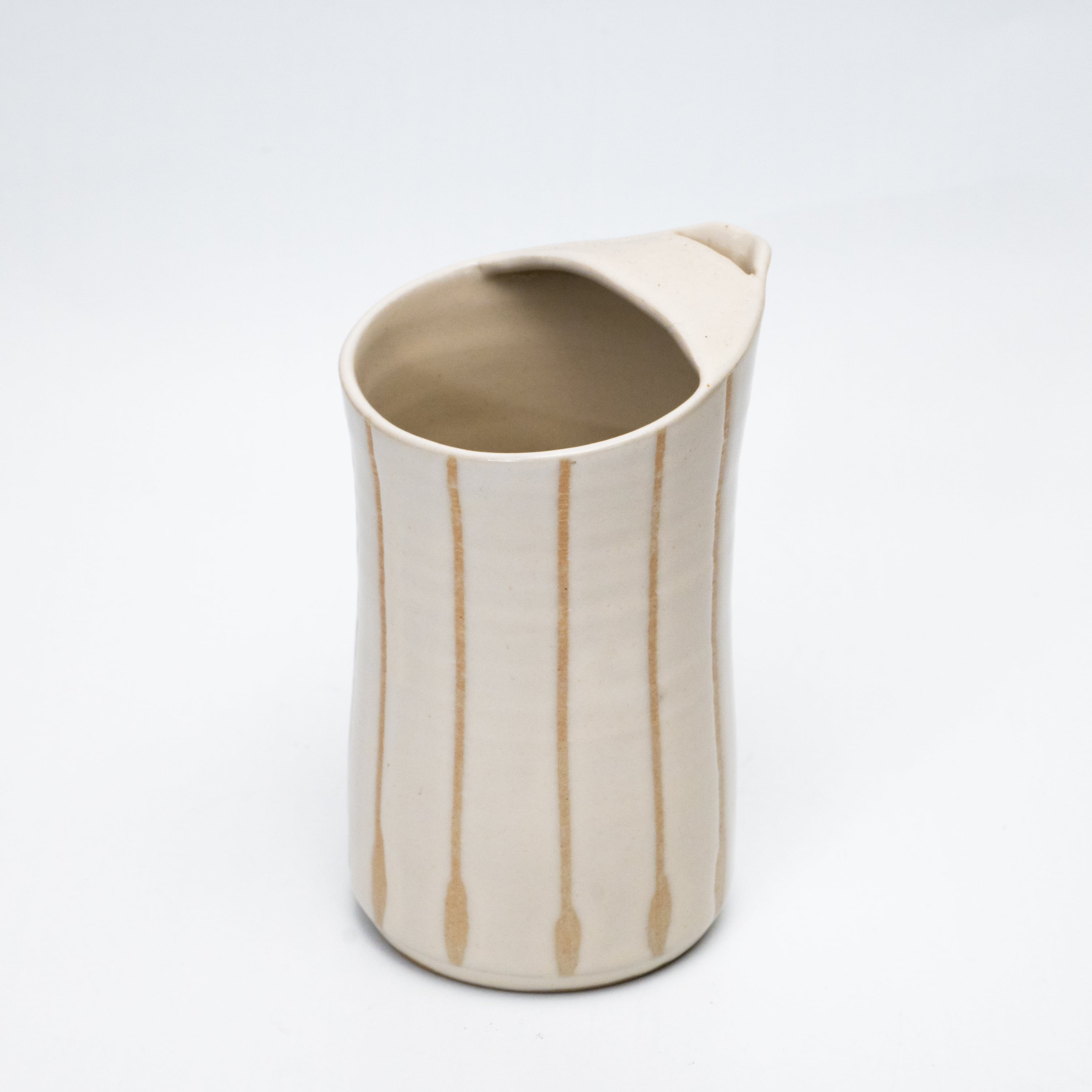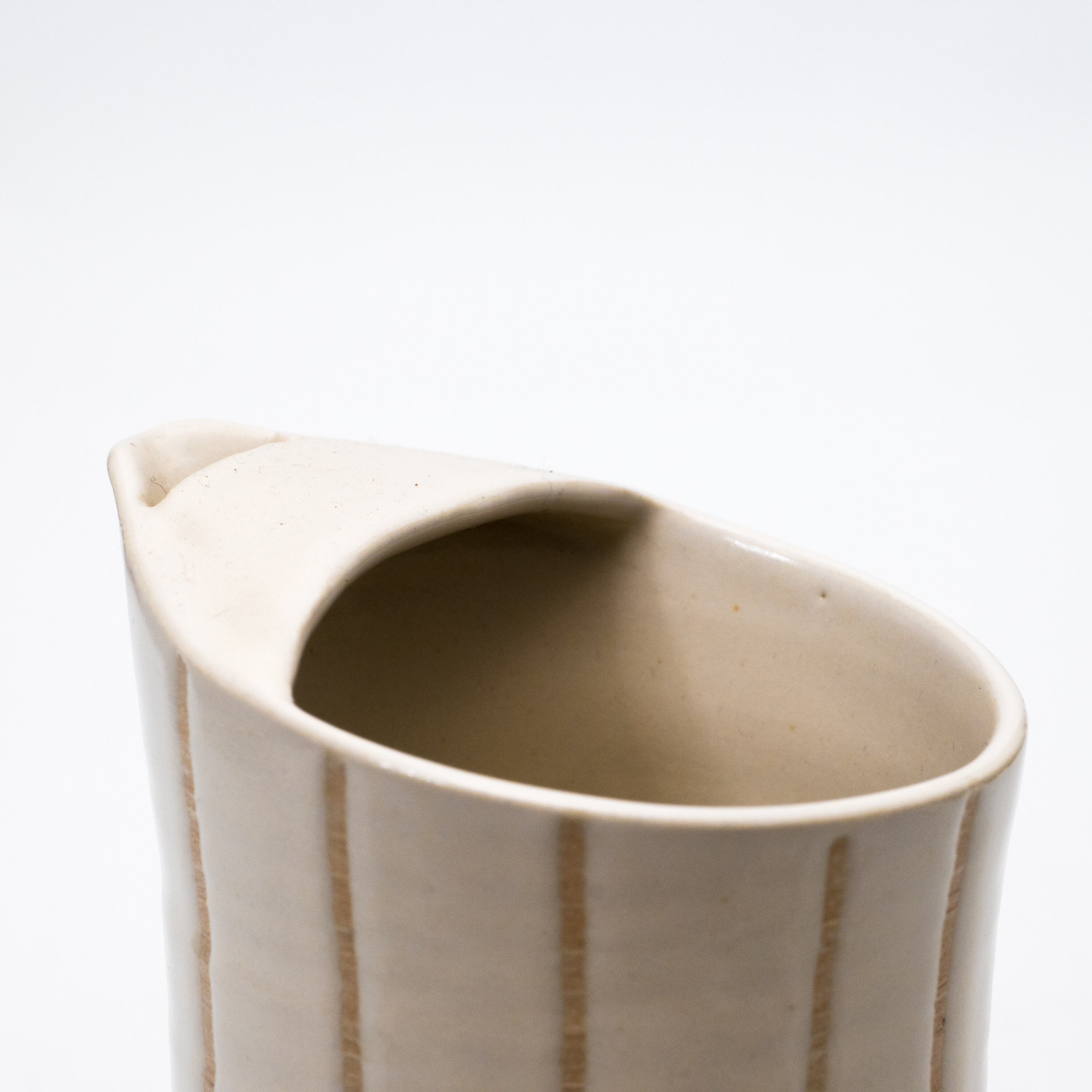 半光沢のアイボリー色に薄いゴールドの縦縞模様が入った片口酒器です。