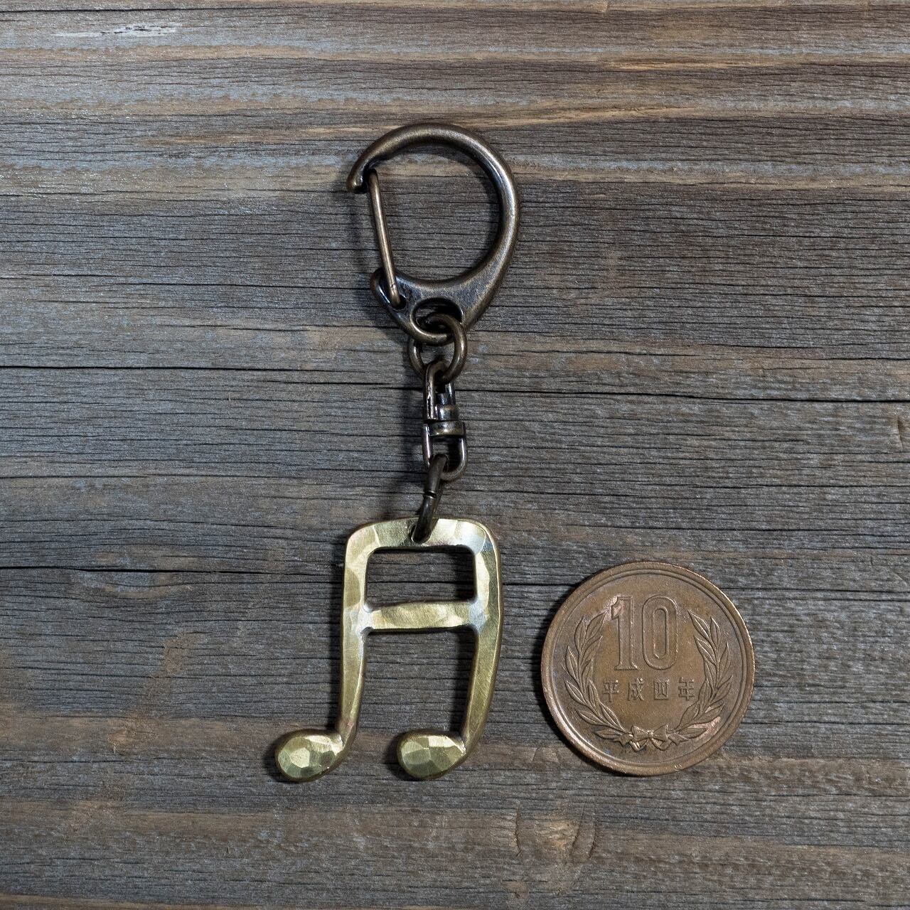真鍮の線を丁寧に曲げて叩いて作られた16分音符をモチーフとしたキーホルダー。