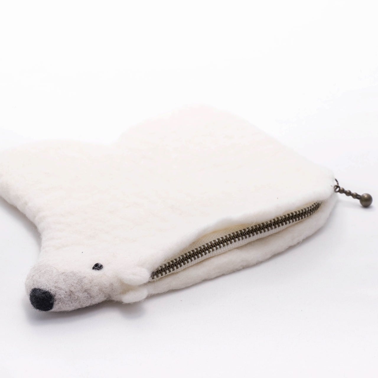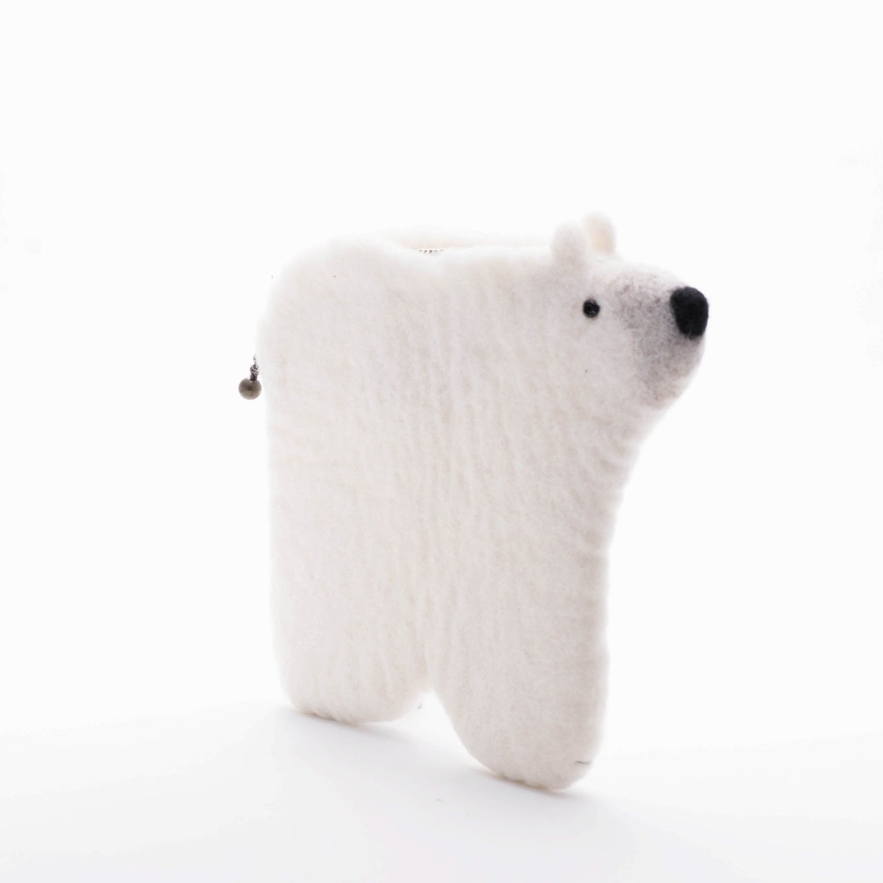 羊毛でチクチクと丁寧に丁寧に作られたシロクマのポーチです。
